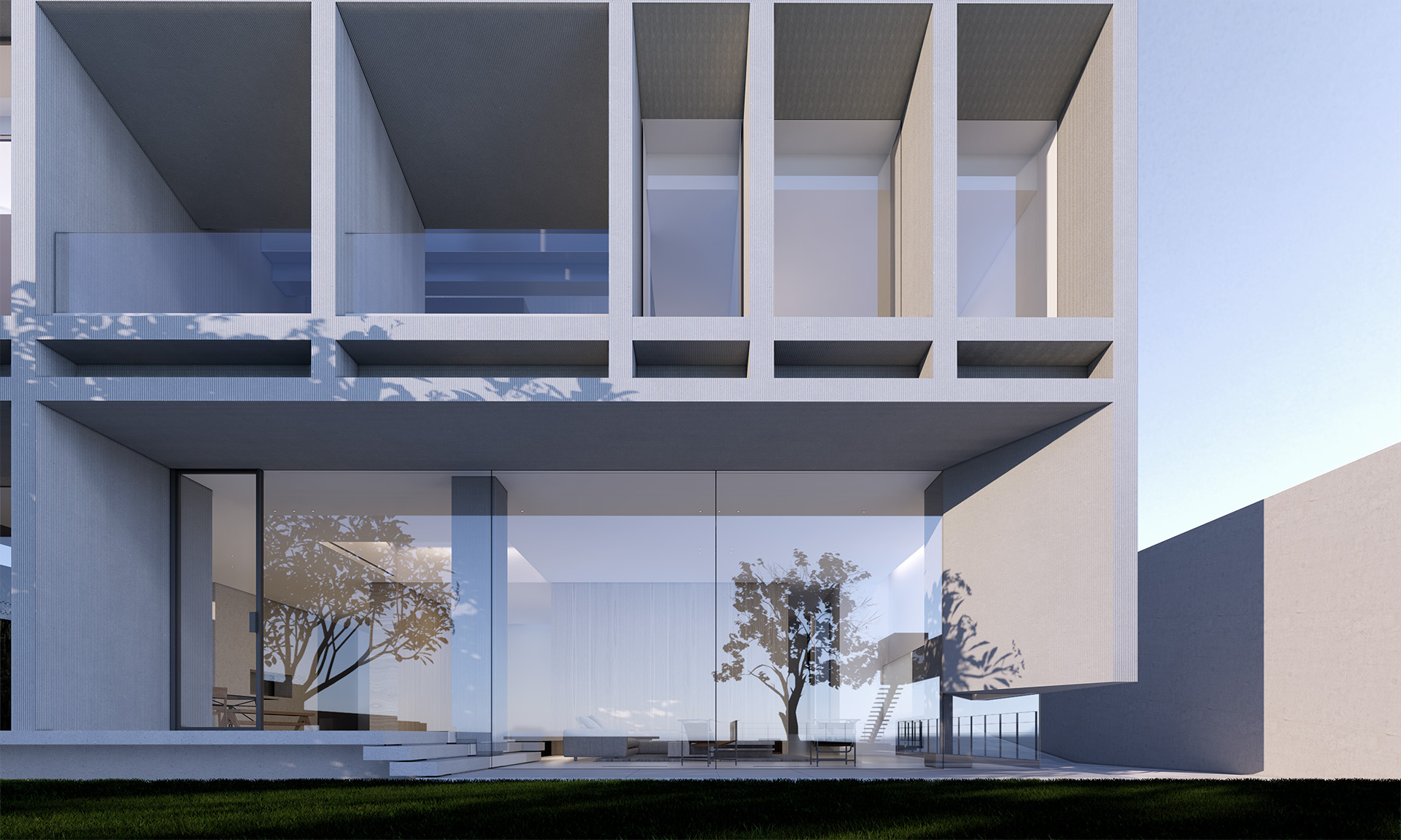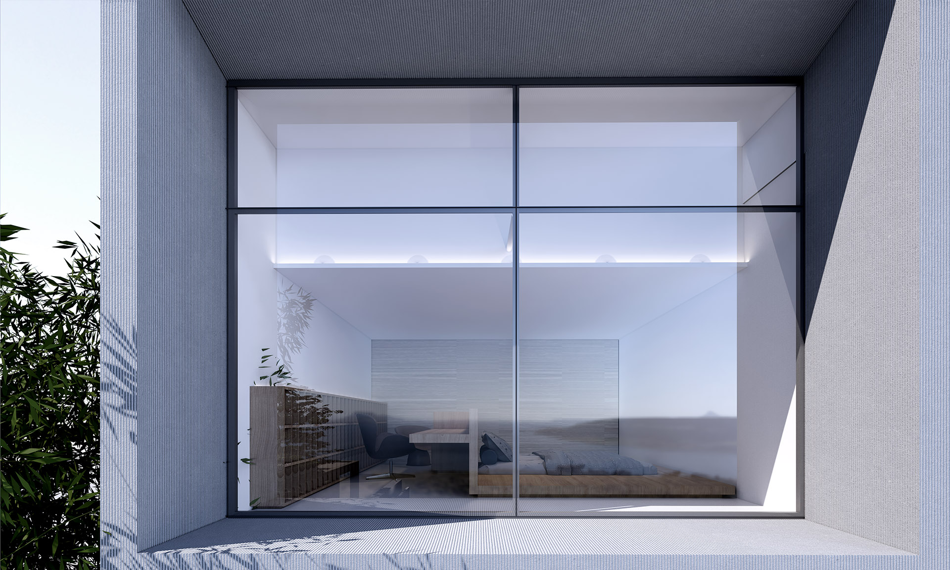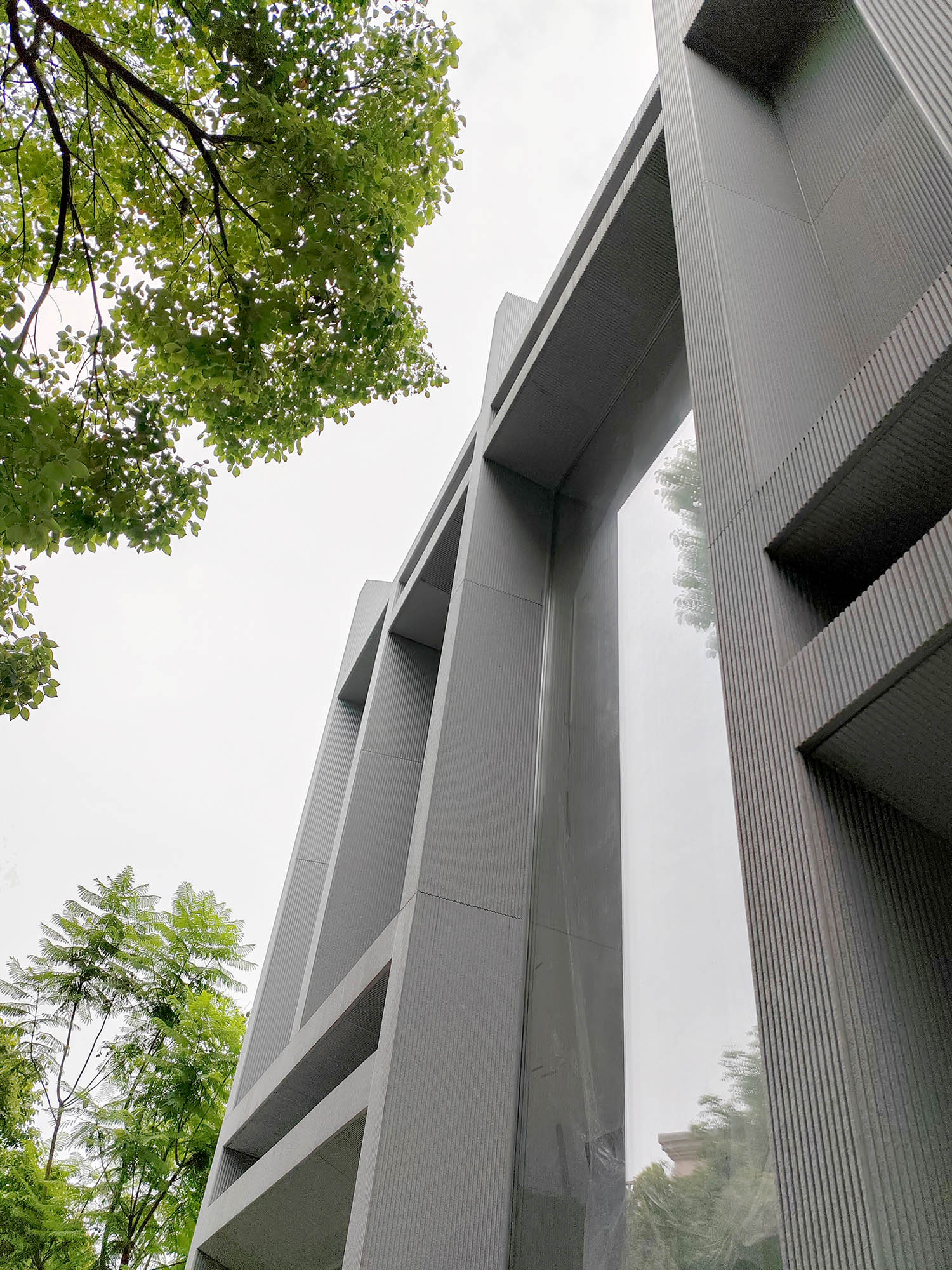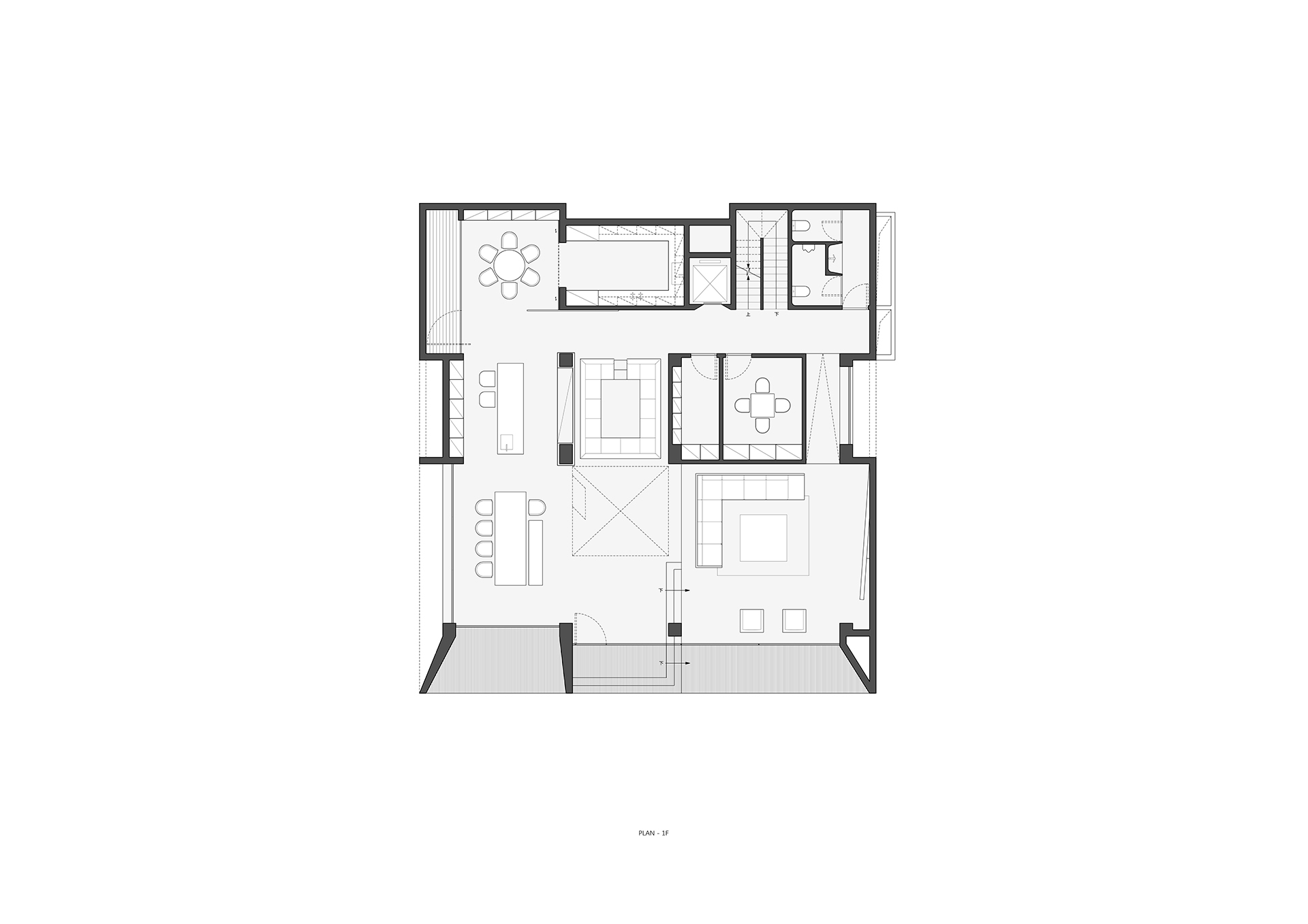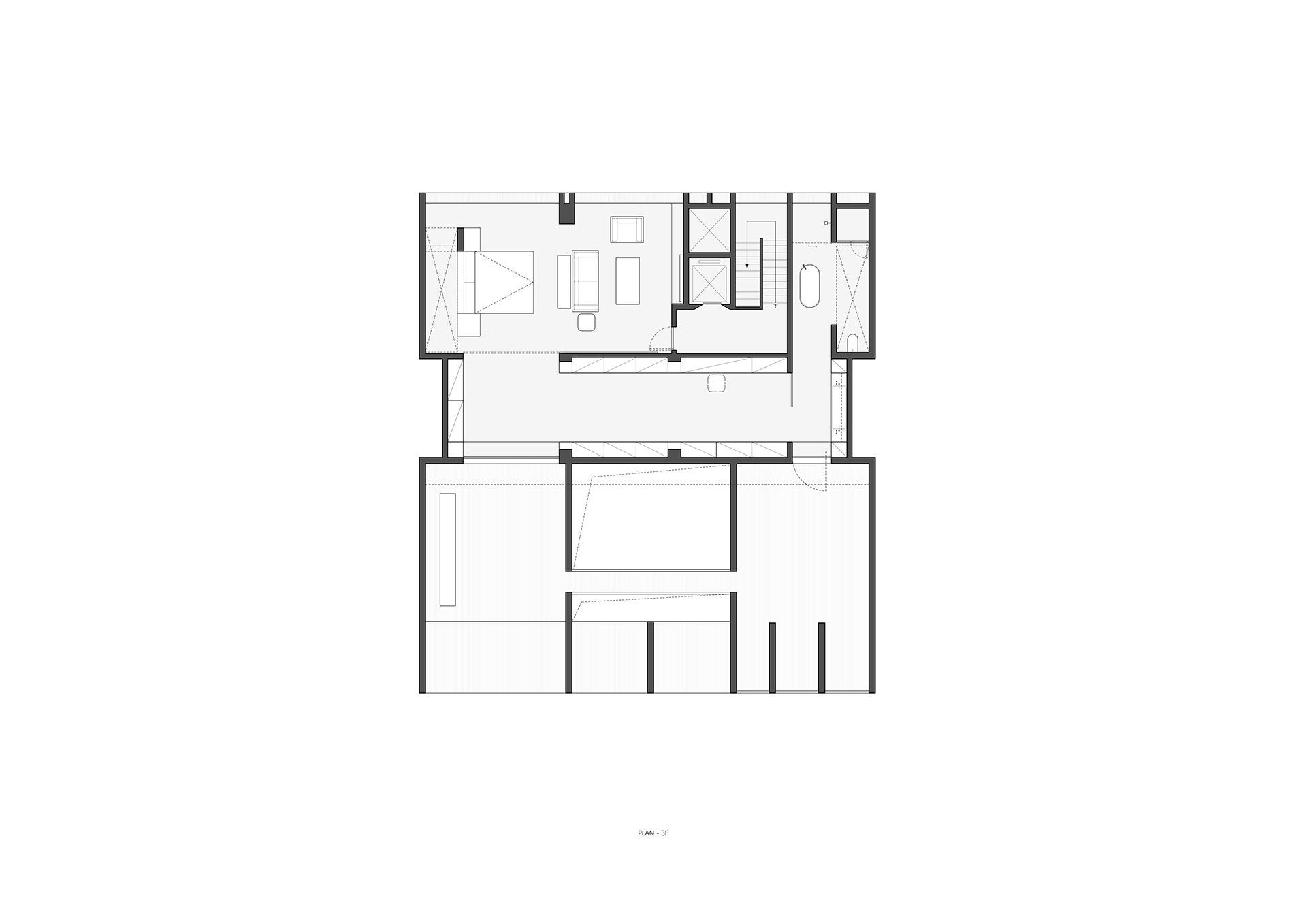 这原本是一个“中式想象的欧式”建筑,为什么说是想象呢?因为欧洲从未有这样的建筑样式存在。这是在特定时期一种用廉价创造奢华的造梦方法。但是他地处长江边,高悬于山腰之上,无限的风景环绕。经过长时间的讨论,业主终于下定决心将其进行一个脱胎换骨的改造,将一个“欧式”建筑改造成为贴合生活本质的真实建筑。改造后的空间更加开阔。玻璃窗将长江和远山引入室内,天井让自然光线抵达到房间的进深处,一改原本由于单侧采光所产生的幽暗。花园是漂浮起来的草坪,相互叠加,在叠加的边缘安置了照明路径的光线。泳池的水蔓出了边界,像一面镜子,在视觉上连接到了长江。围墙原本低矮,院子内部几乎能被肆意的窥探。于是将结构柱升高,清水混凝土除了填充部分墙面,还在柱子顶部搭建了一个更加适合远眺的平台。底部仍有大量空间可以被使用,于是便有了果园,球场,鱼池,动物园......