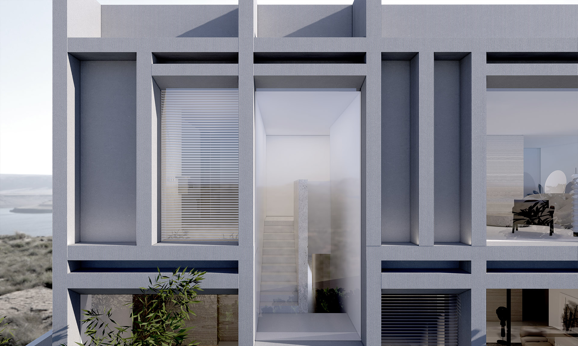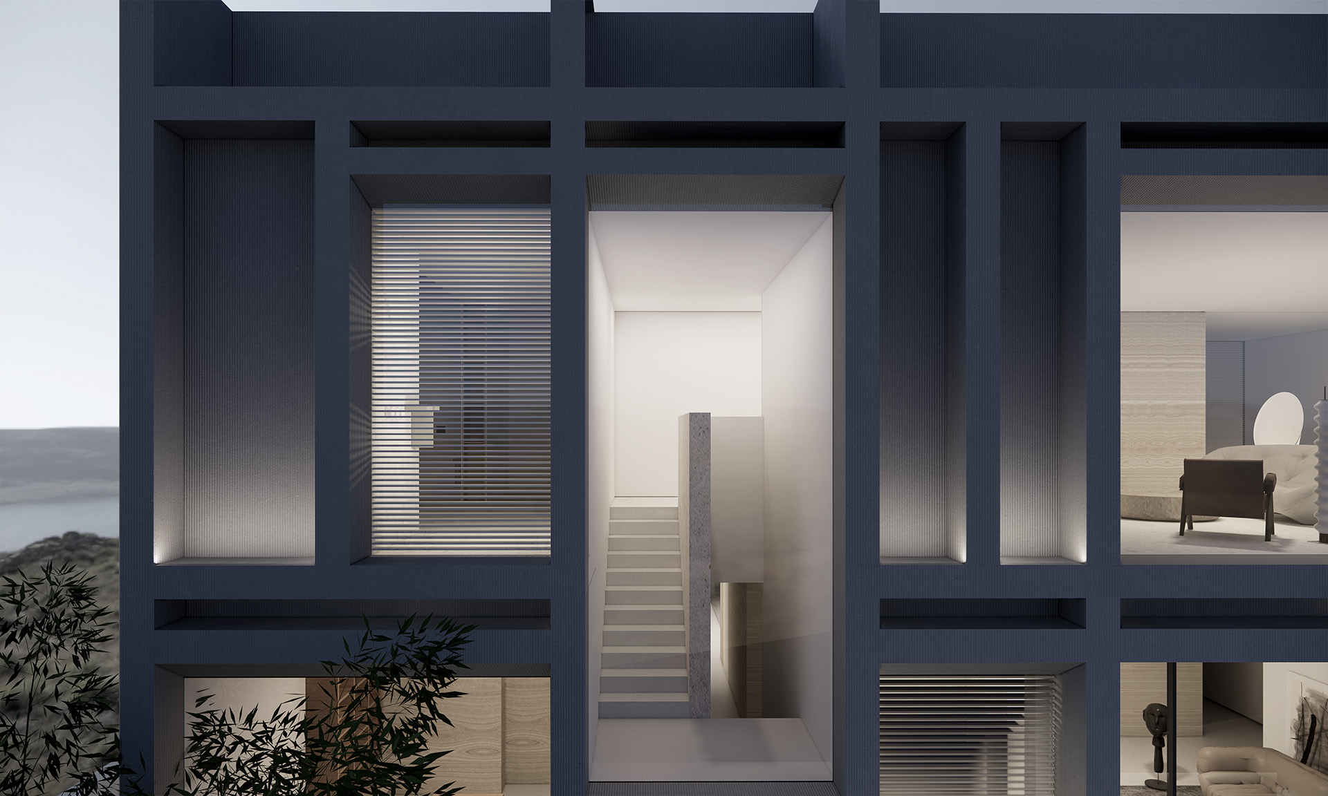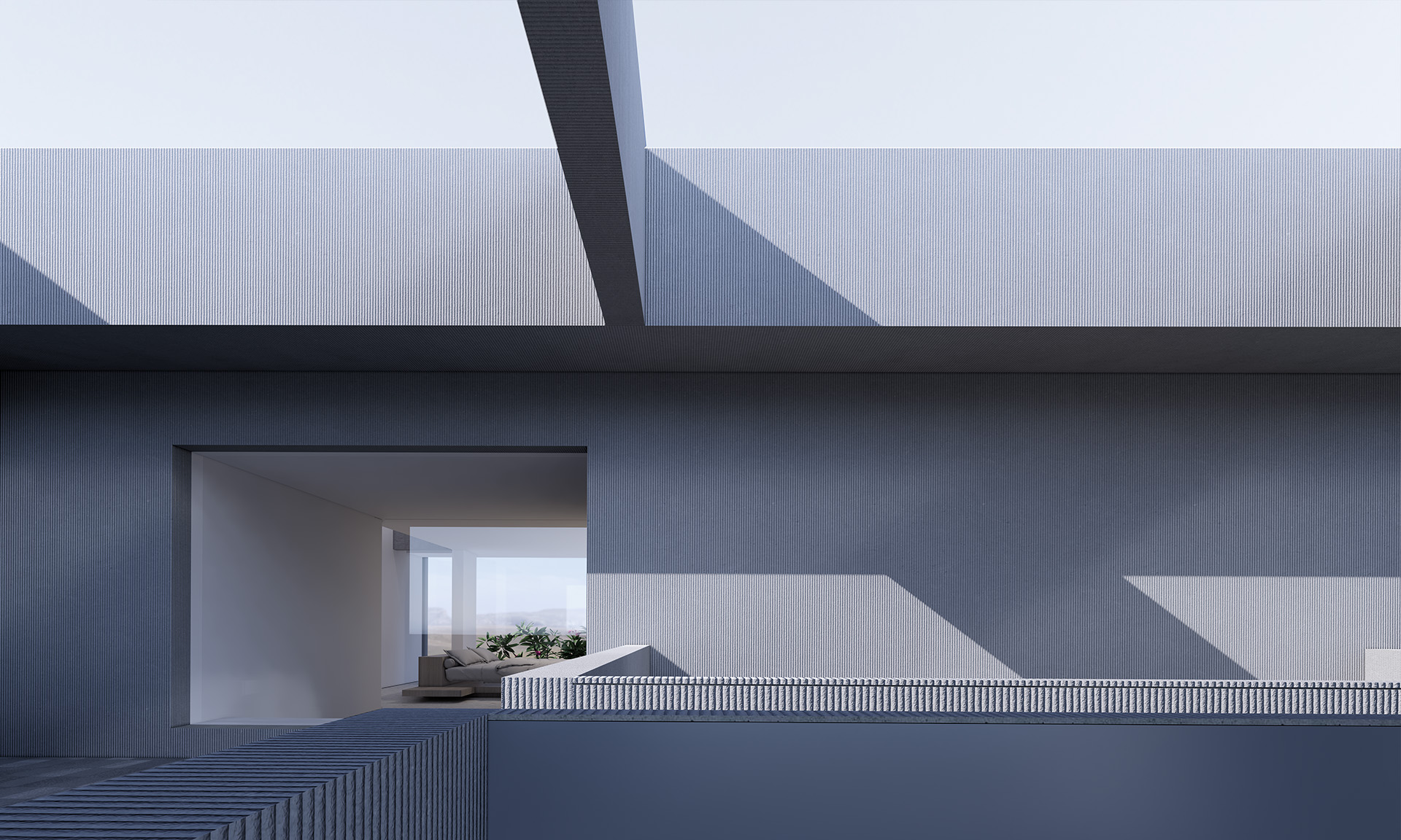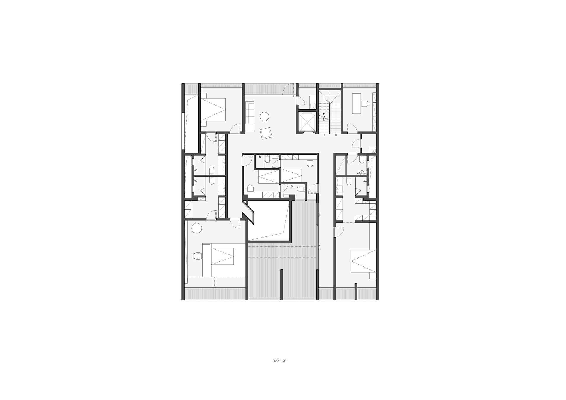 这原本是一个“中式想象的欧式”建筑,为什么说是想象呢?因为欧洲从未有这样的建筑样式存在。这是在特定时期一种用廉价创造奢华的造梦方法。但是他地处长江边,高悬于山腰之上,无限的风景环绕。经过长时间的讨论,业主终于下定决心将其进行一个脱胎换骨的改造,将一个“欧式”建筑改造成为贴合生活本质的真实建筑。改造后的空间更加开阔。玻璃窗将长江和远山引入室内,天井让自然光线抵达到房间的进深处,一改原本由于单侧采光所产生的幽暗。花园是漂浮起来的草坪,相互叠加,在叠加的边缘安置了照明路径的光线。泳池的水蔓出了边界,像一面镜子,在视觉上连接到了长江。围墙原本低矮,院子内部几乎能被肆意的窥探。于是将结构柱升高,清水混凝土除了填充部分墙面,还在柱子顶部搭建了一个更加适合远眺的平台。底部仍有大量空间可以被使用,于是便有了果园,球场,鱼池,动物园......